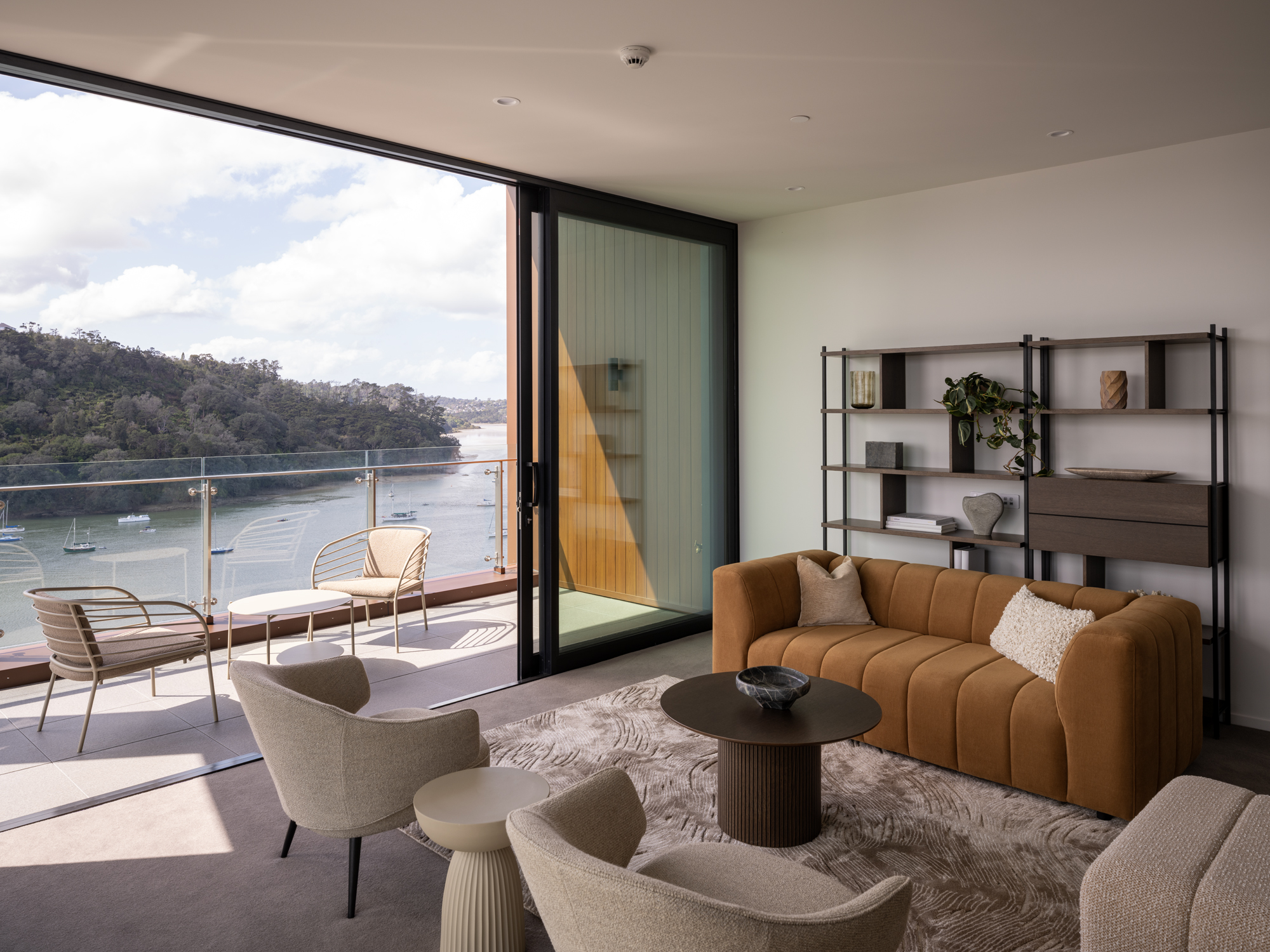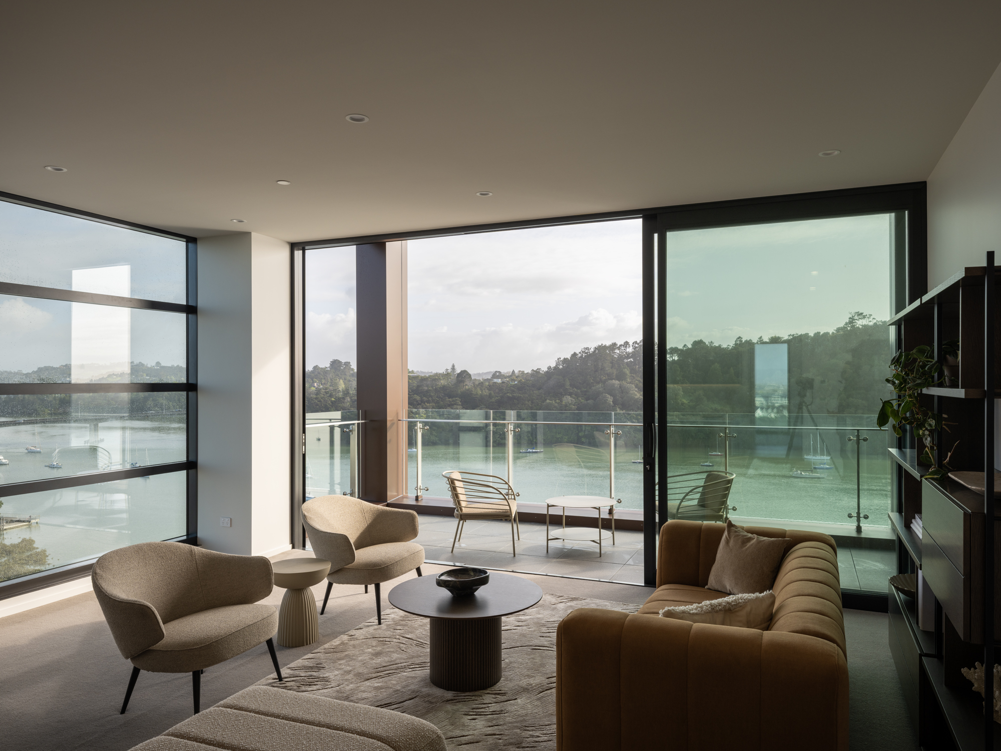 BoConcept Auckland proudly furnished one of the penthouse apartments in the 2025 Auckland Architecture Awards–winning development. Framed by stunning views, the residence was styled in a modern luxe theme, layered with dark oak finishes and rich, moody tones to create depth and warmth throughout.