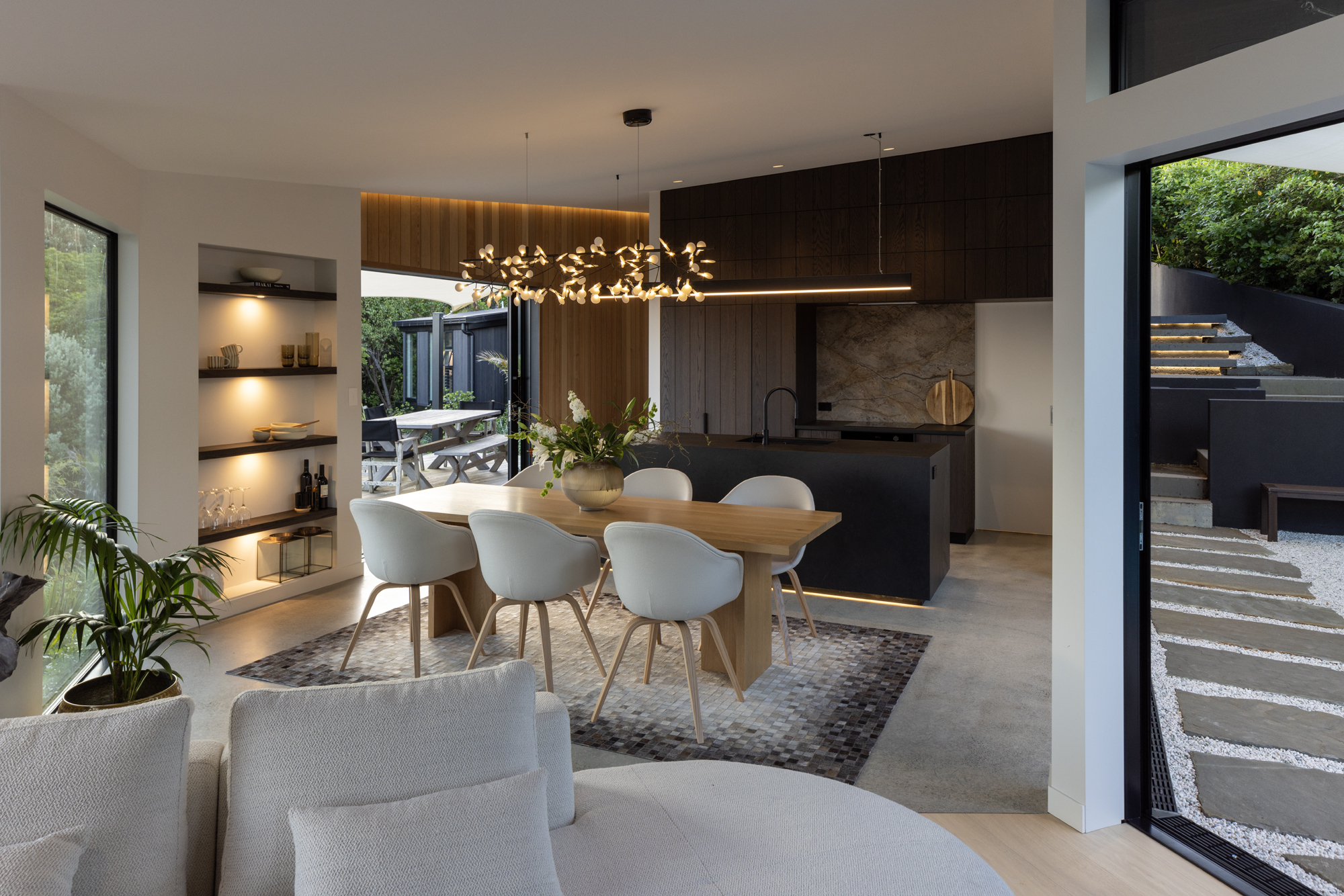 The brief for BoConcept Auckland was to soften those strong lines and bring warmth, flow, and ease to the interior - creating a calm, considered retreat thatfelt deeply tied to its surroundings.